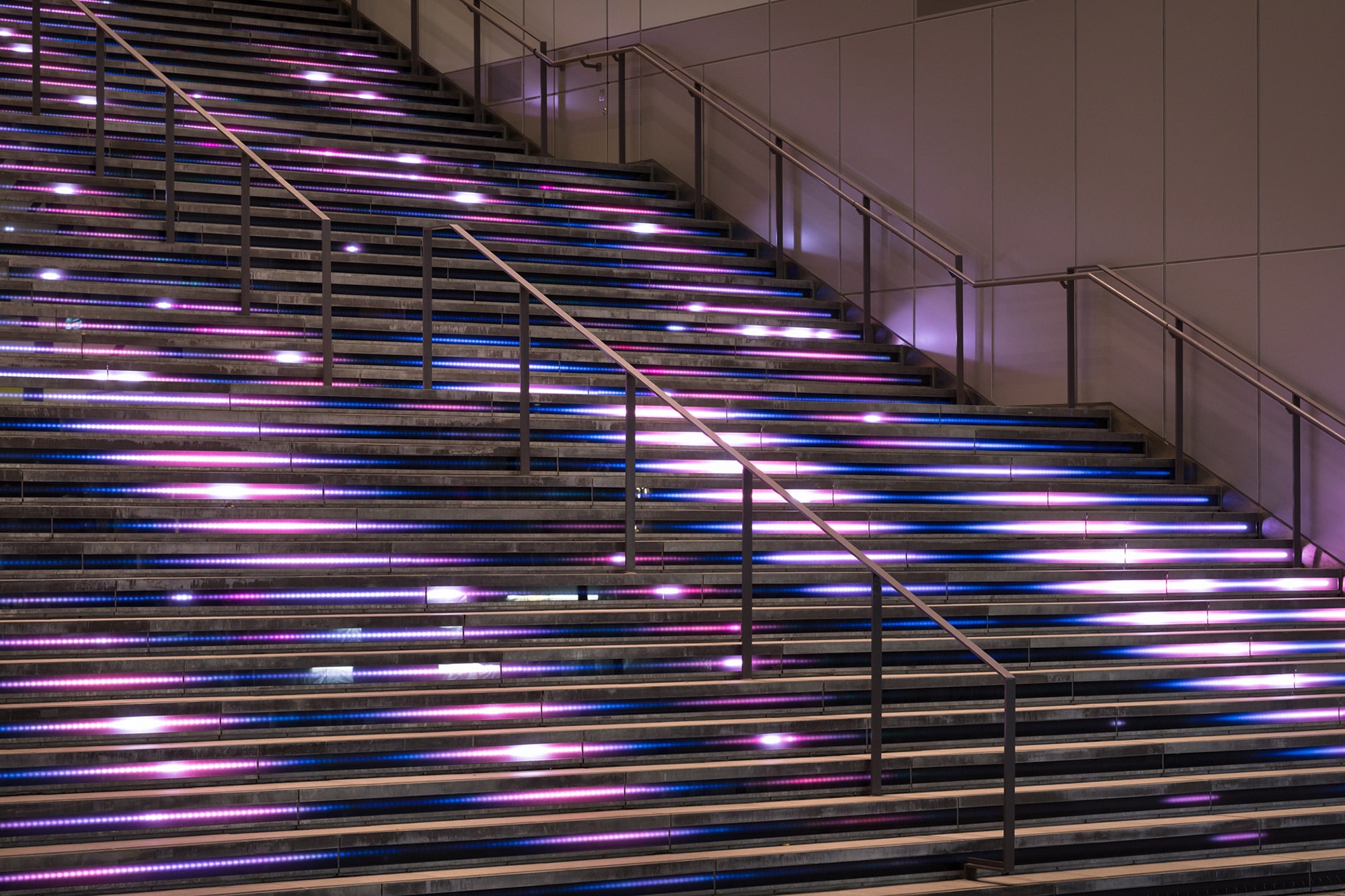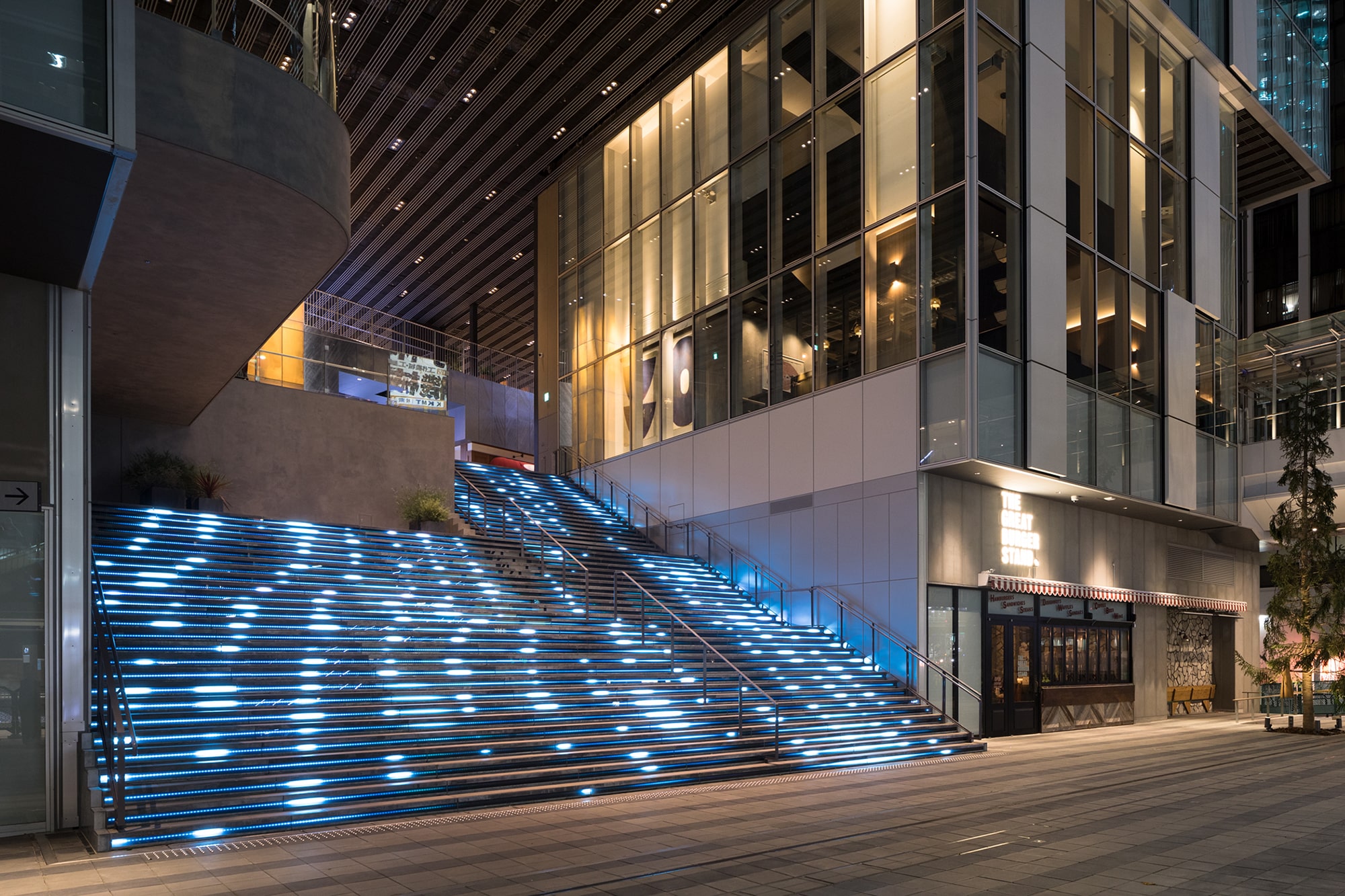 SHIBUYA STREAM is a large-scale complex facility, built as a result of redevelopment of the former platform and railroad tracks of the Toyoko Line at Shibuya Station. TAKT PROJECT designed the visual identity (VI) of the facility including the logo. We were also in charge of environmental designs of symbolic physical components of the facility: the large video-projection wall in the connecting passage between the facility and the surrounding city, and the grand staircase that leads from the connecting passage to the Shibuya River. The facility was named SHIBUYA STREAM to represent Tokyu Railways’s desire to continue creating trends for the next generation as a “holy ground for creative workers” where various people and ideas intersect. In order to embody this desire, we designed the logo by integrating two meanings: the moment when an “idea=!” that symbolizes creativity emerges from a “person=i,” and the moment when an idea “!” intersects another idea “!.”