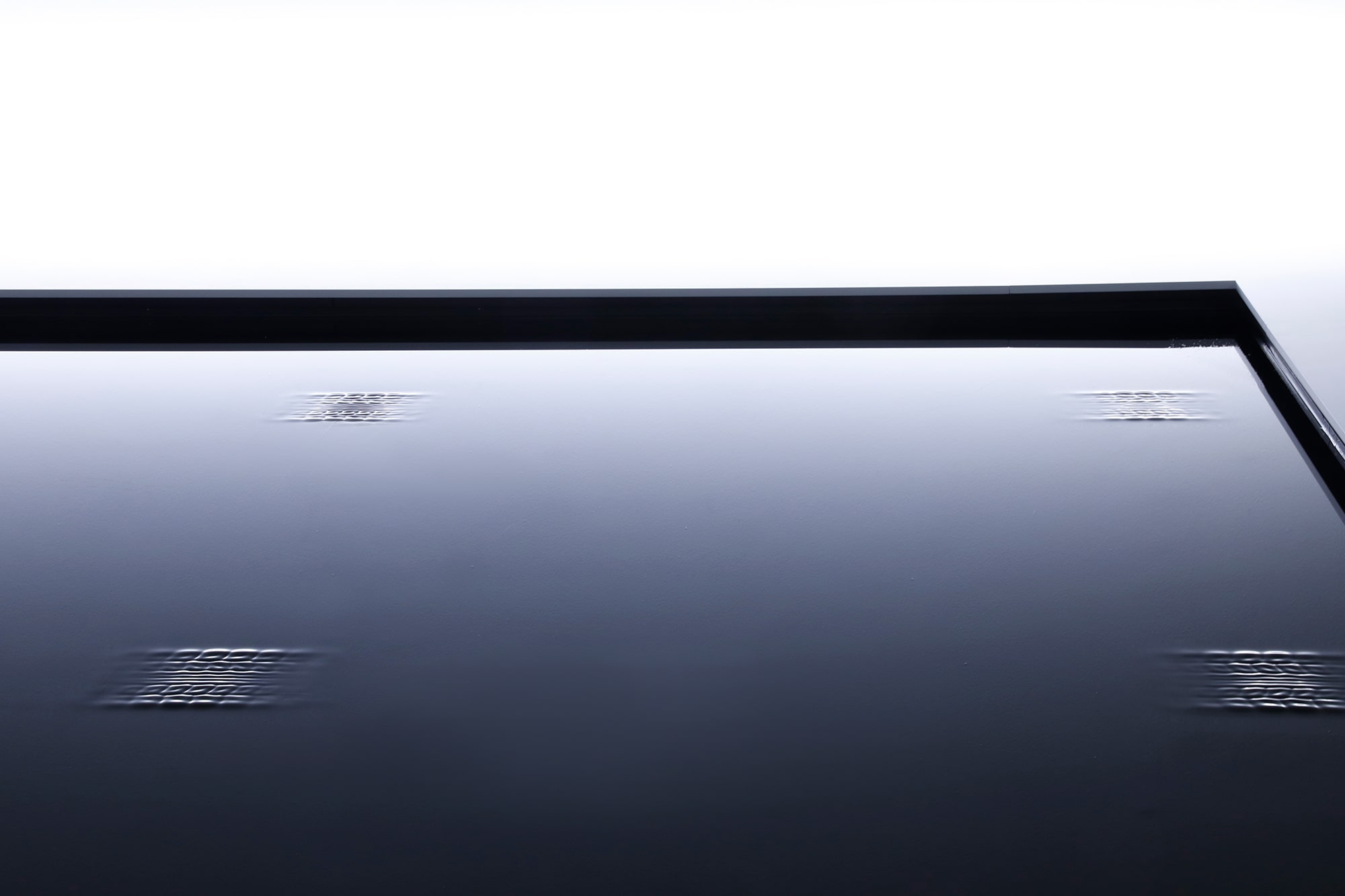 Aisin Seiki's technology manufactures many of the components that make up a car, supports the car from the inside, and creates a new relationship between people and mobility. Although the technology of Aisin Seiki is hidden inside the car, we aimed to express their advanced technology by expressing the most important thing created by their technologies as "beautiful movement." On the large basin filled with a special fluid, the contact surface of the tire appears as a three-dimensional shape, draws an elegant arc, runs off vividly, and only the trajectory of movement is expressed. It is not the appearance of the car as a substance, but the beautiful movement of the car itself, and the expression as a sign. Also, when the large basin and the viewer confront each other, the movement and the viewer meet and create a relationship between people and mobility, which gives a significant impression as an experience. By expressing the advanced automobile technology of Aisin Seiki, which is originally inside the car, with only "beautiful movement" created by that technology, this installation directly conveys and recalls Aisin Seiki’s goal of “creating the relationship between people and mobility.”
